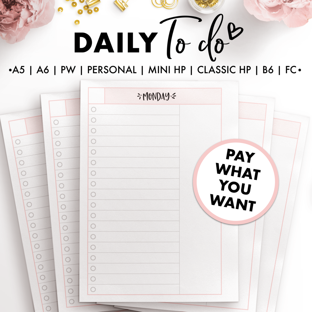 Daily To do | 8 Pages | A5, A6, Personal, Personal Wide, B6, Mini HP, Classic HP, FC Compact | Created by PrintableForPlanners